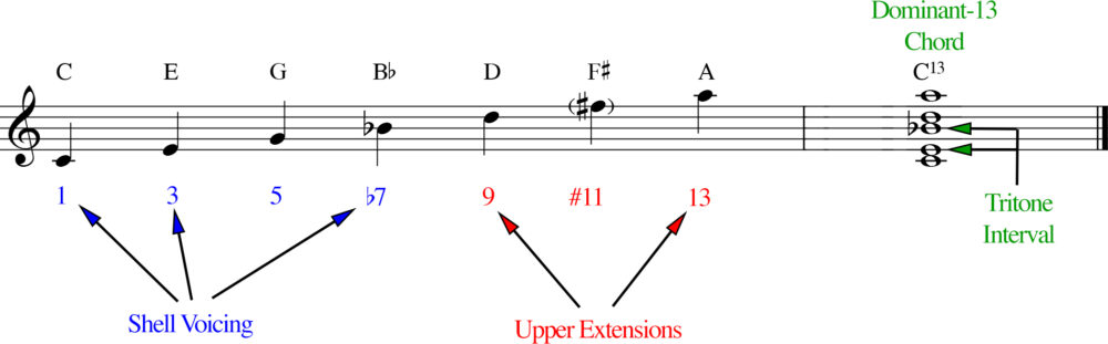 Figure 2: Chord Tones and Extensions Comprising the Dominant-13 Chord