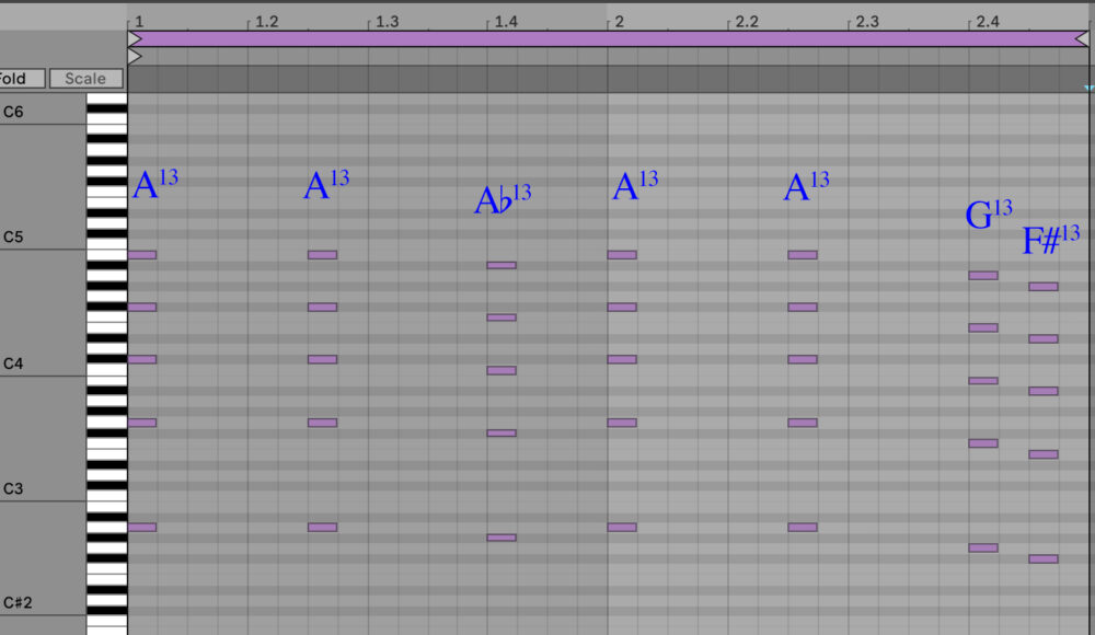 Now, this raises the question: Why did he land on those particular chord locations when planing the A13 in the piano roll? Is there something special about those locations? Let’s explore further.