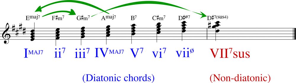 Figure 6: Diatonic Chords in the Key of E, and Silk Sonic’s “Sus” Version of the 7th Degree