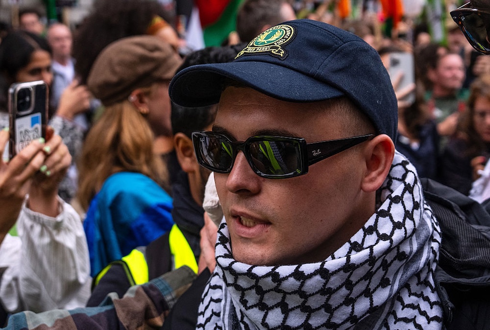 In May, Mo Chara, a member of the Belfast rap group Kneecap, was charged under the UK’s Terrorism Act, accused of displaying a Hezbollah flag at a 2024 Kneecap show in London. The charge came after Kneecap were faced with what the group (accurately, in my opinion) described as a “coordinated smear campaign” for voicing their support for the Palestinian people during their Coachella set. In the process, Kneecap have become symbols for the struggle against Israel’s genocidal campaign. When Mo Chara first appeared in court to answer those charges in June, he was thronged by supporters. Today, Chara returned to court, and the same thing happened again.